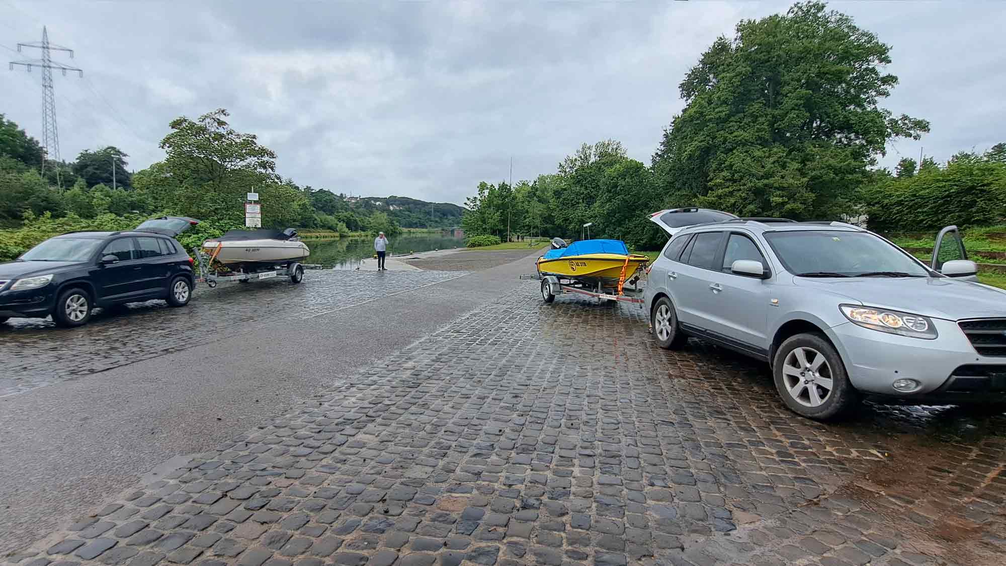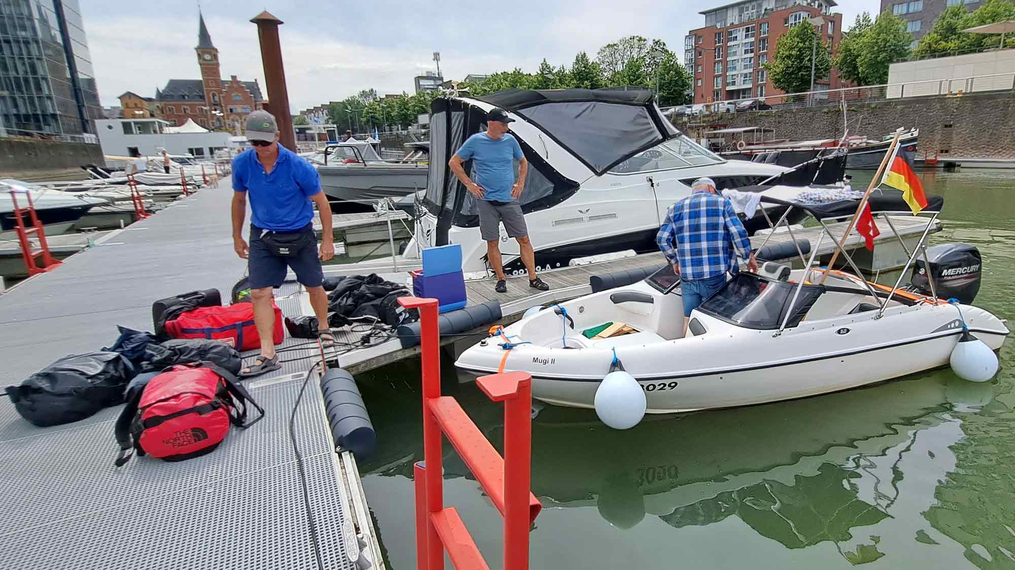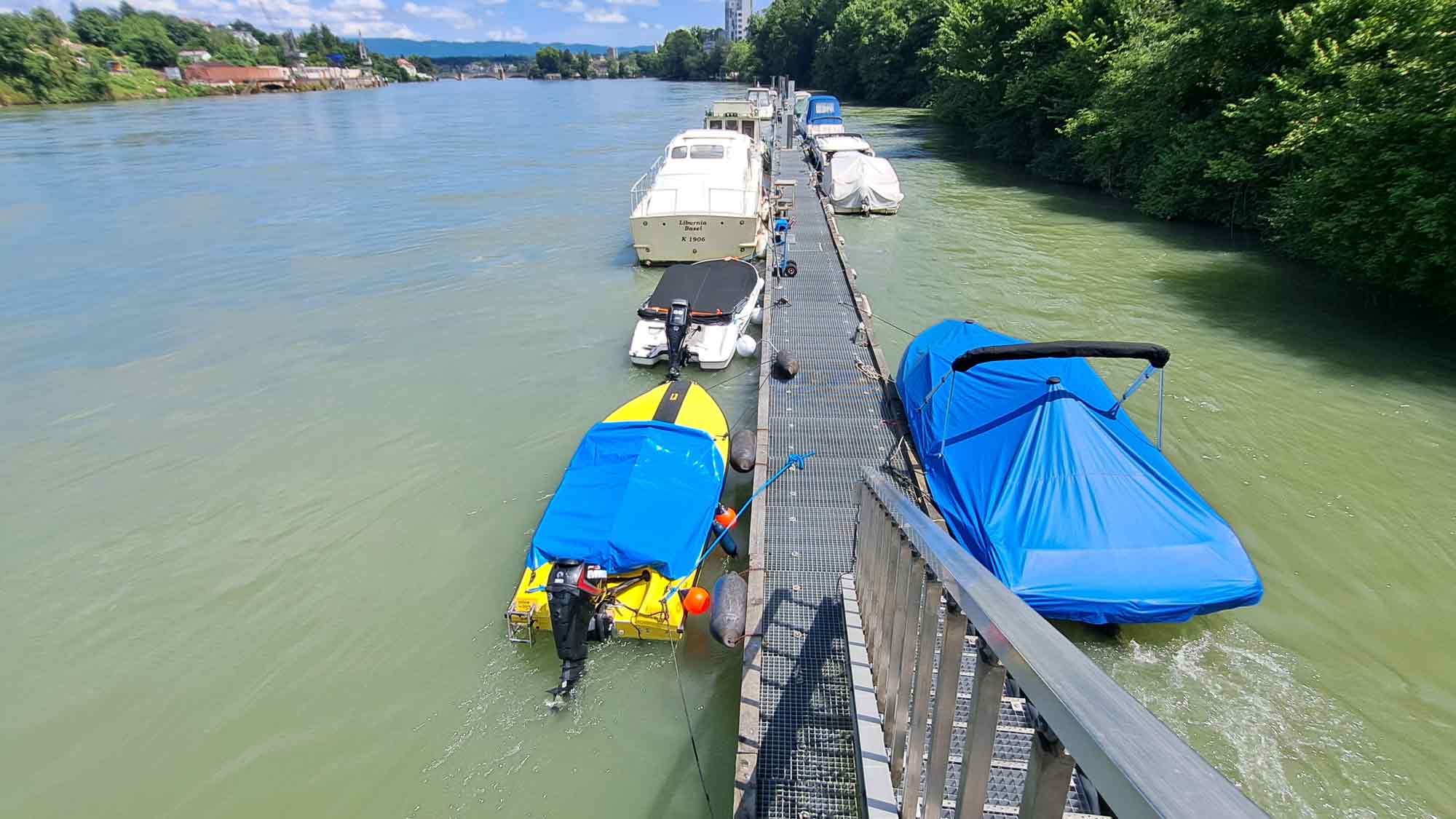 Am Donnerstag 11. Juli 2024 wasserten wir unsere zwei Boote in Neuenhof aus und verschoben sie auf der Strasse zur Einwasserungsrampe in Kaiseraugst. Von dort ging es flussaufwärts bis zum Steg des Bootclub Rheinfelden, der uns für eine Nacht Gastrecht bot. Am Freitag legten wir ab, rheinabwärts mit Ziel Köln.