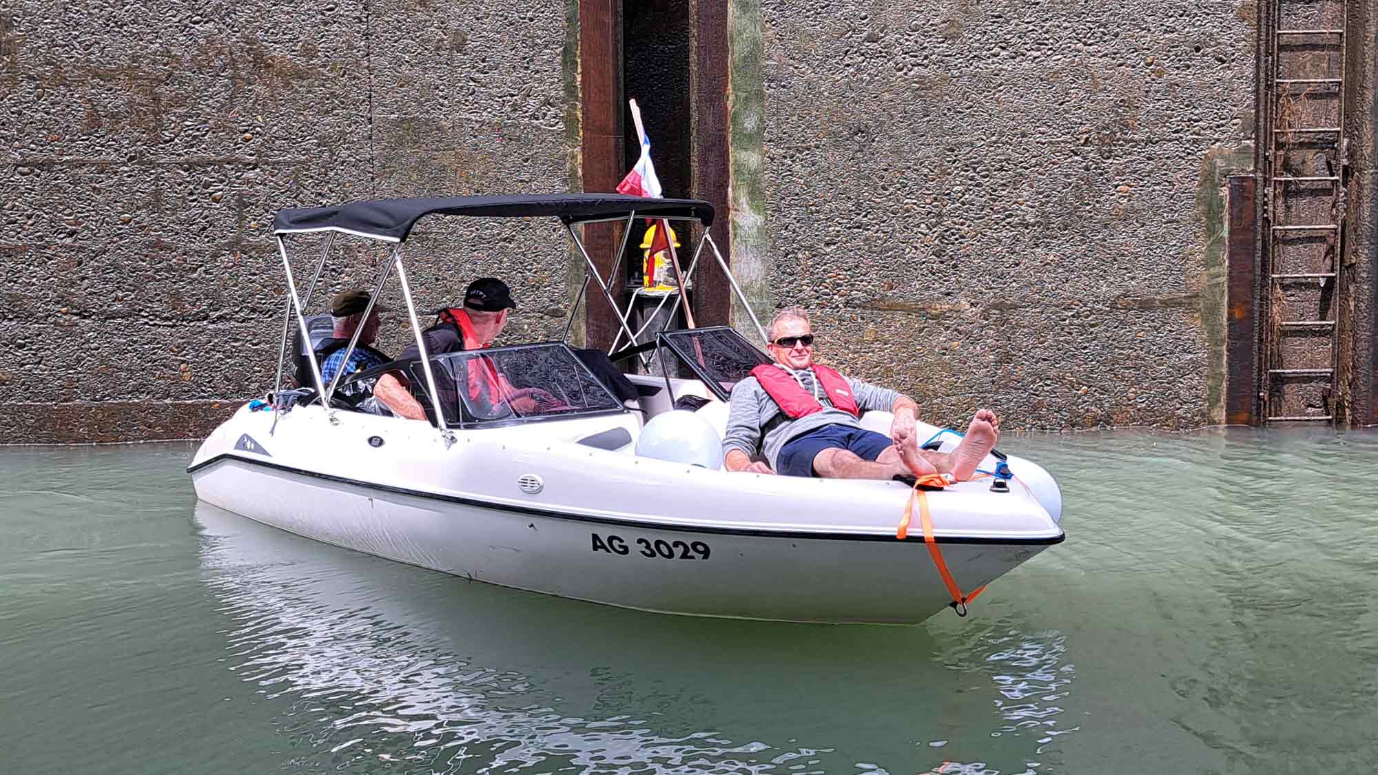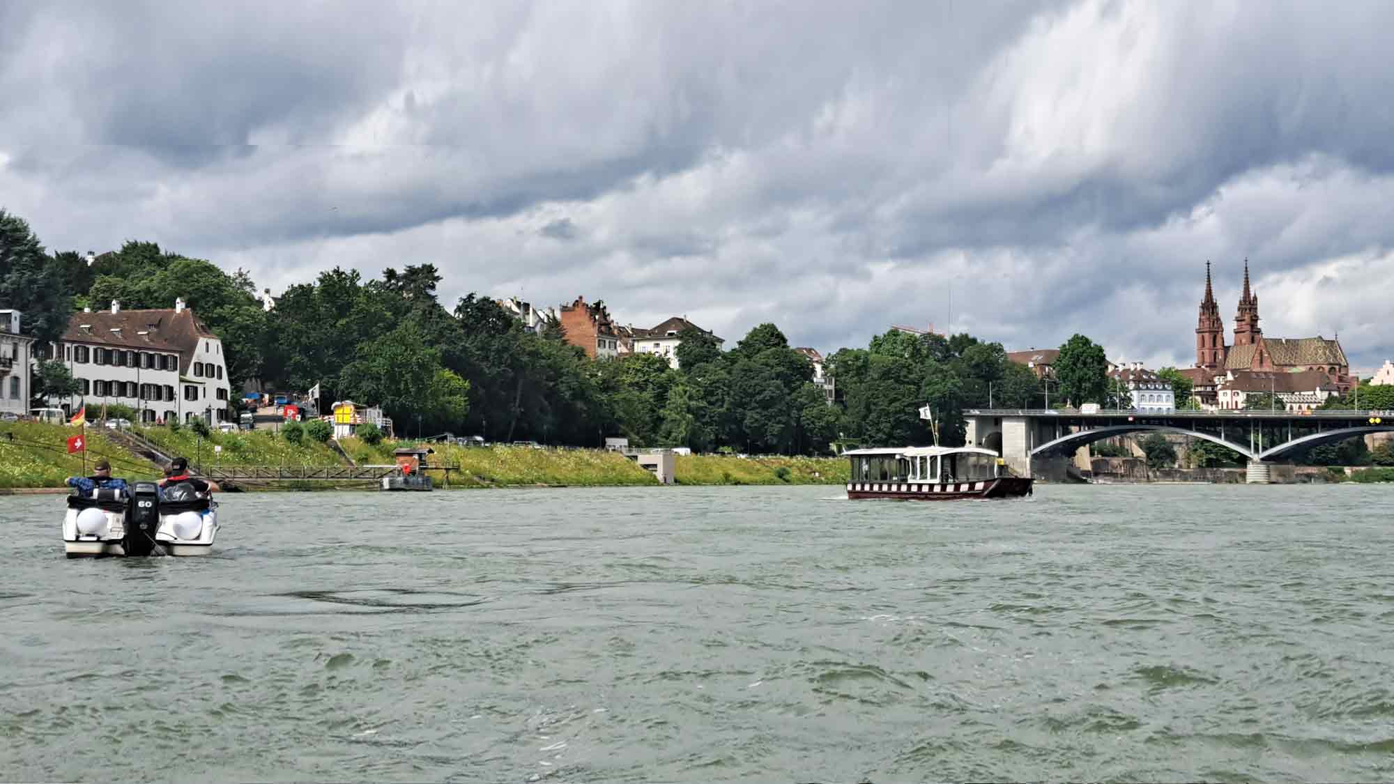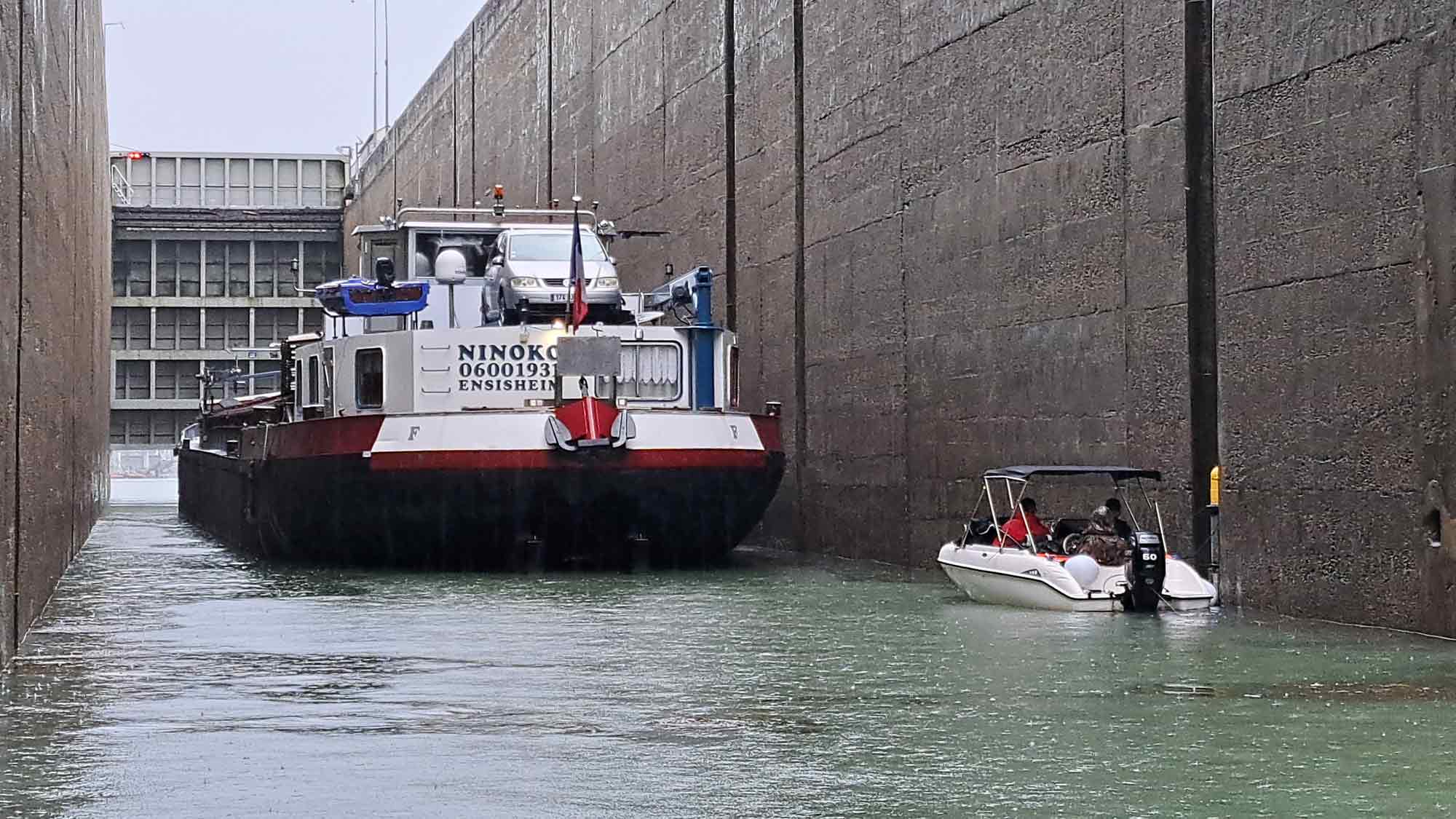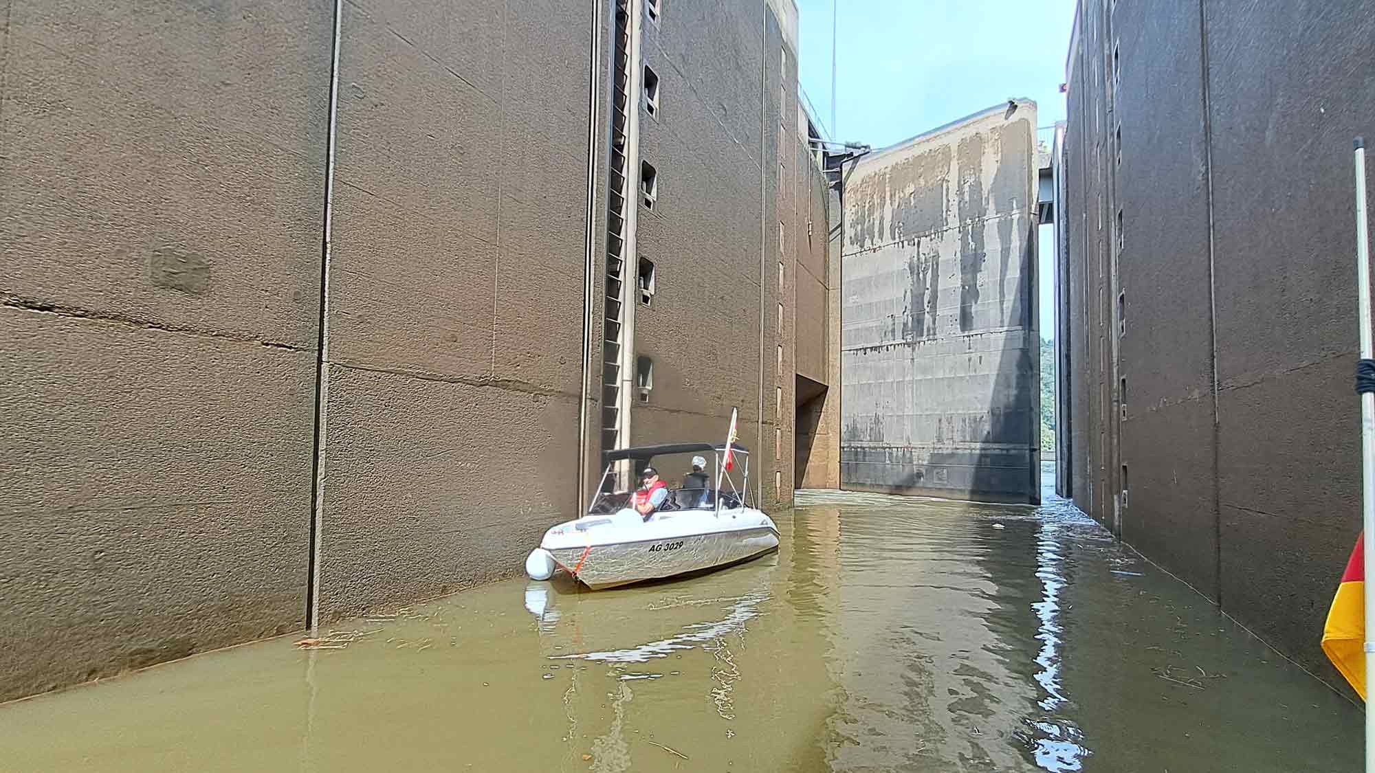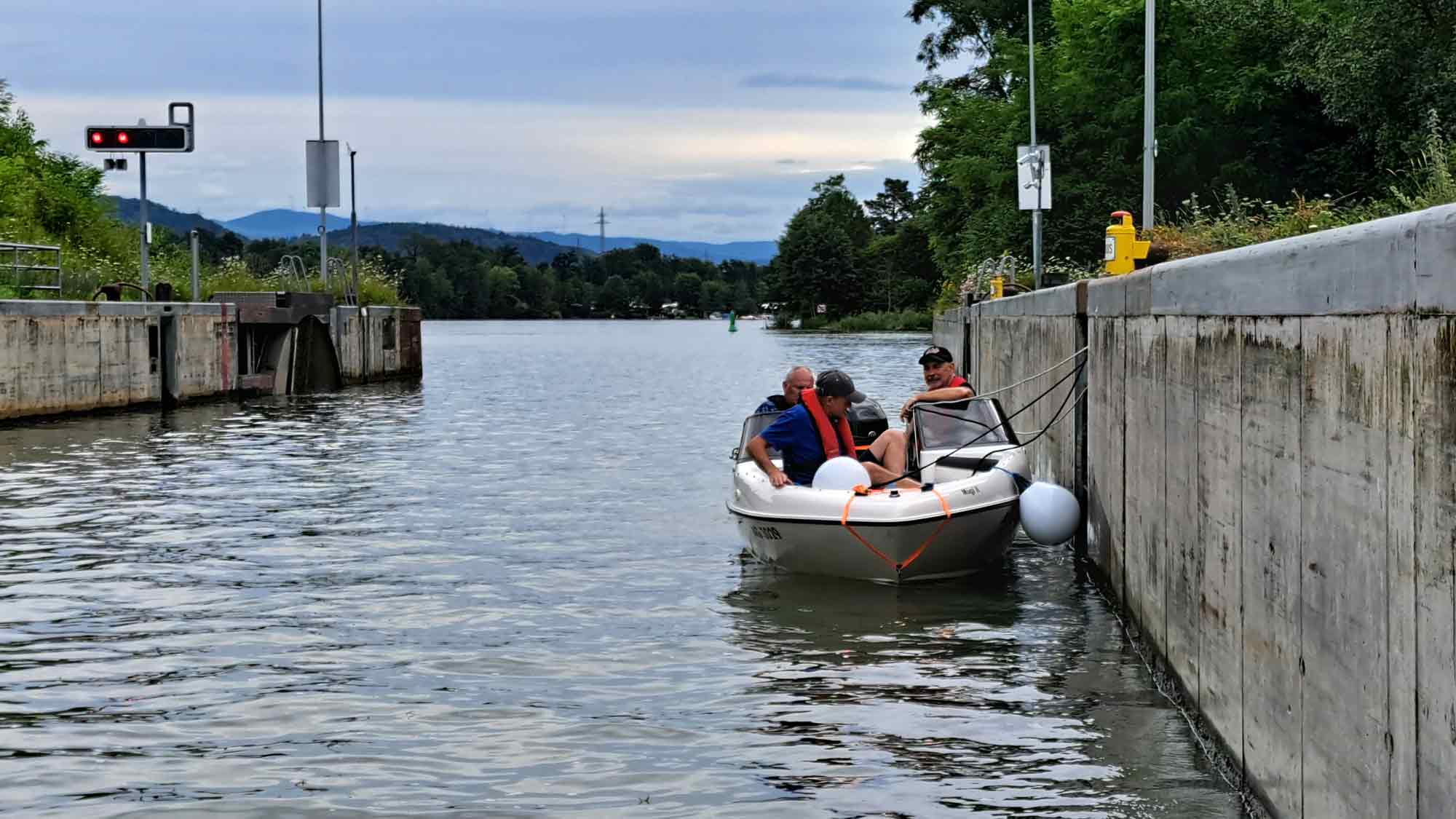 Das Bootfahren auf dem Rhein verlangt Aufmerksamkeit, die Gefahren durch die Grossschiffahrt sind nicht zu unterschätzen. An den ersten beiden Tagen standen die Passagen von 12 Schleusen an. Die Berufsschiffe haben Vorrang, was zu langen Wartezeiten führen kann. Das Wetter meinte es mit den Wettinger Bootsfahrern nicht so gut. Entweder brannte die Sonne heiss vom Himmel, oder es goss zwischendurch wie aus Kübeln.